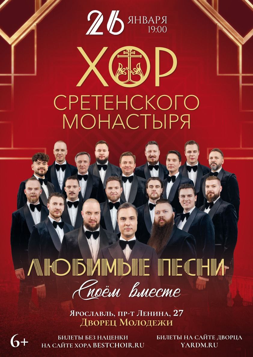 26 января в 19:00 во Дворце Молодежи, Хор Сретенского монастыря представит программу «Любимые песни споем вместе», в которую войдут лучшие народные, советские и современные русские песни. Эти песни мы предлагаем спеть вместе с вами многотысячным хором. Ведь Хор – это образ единства русского народа, Хор – это мы с вами.