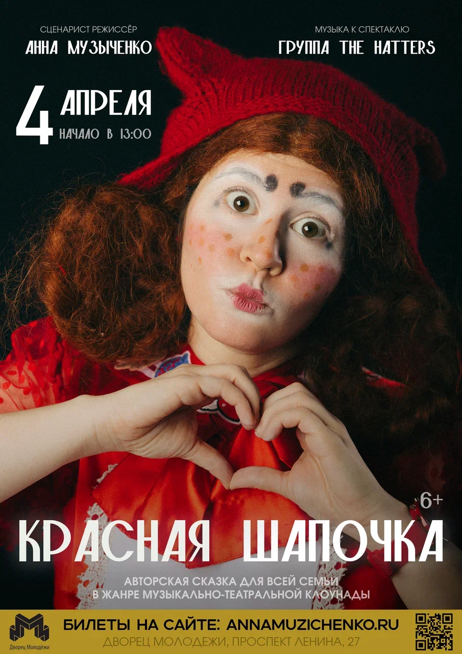 «Красная Шапочка» 6+ - семейный спектакль в жанре музыкально-театральной клоунады. Знакомая с детства сказка оживает в новой интерпретации: смелый юмор, виртуозная пантомима, неожиданные сюжетные повороты и современное прочтение классической истории.